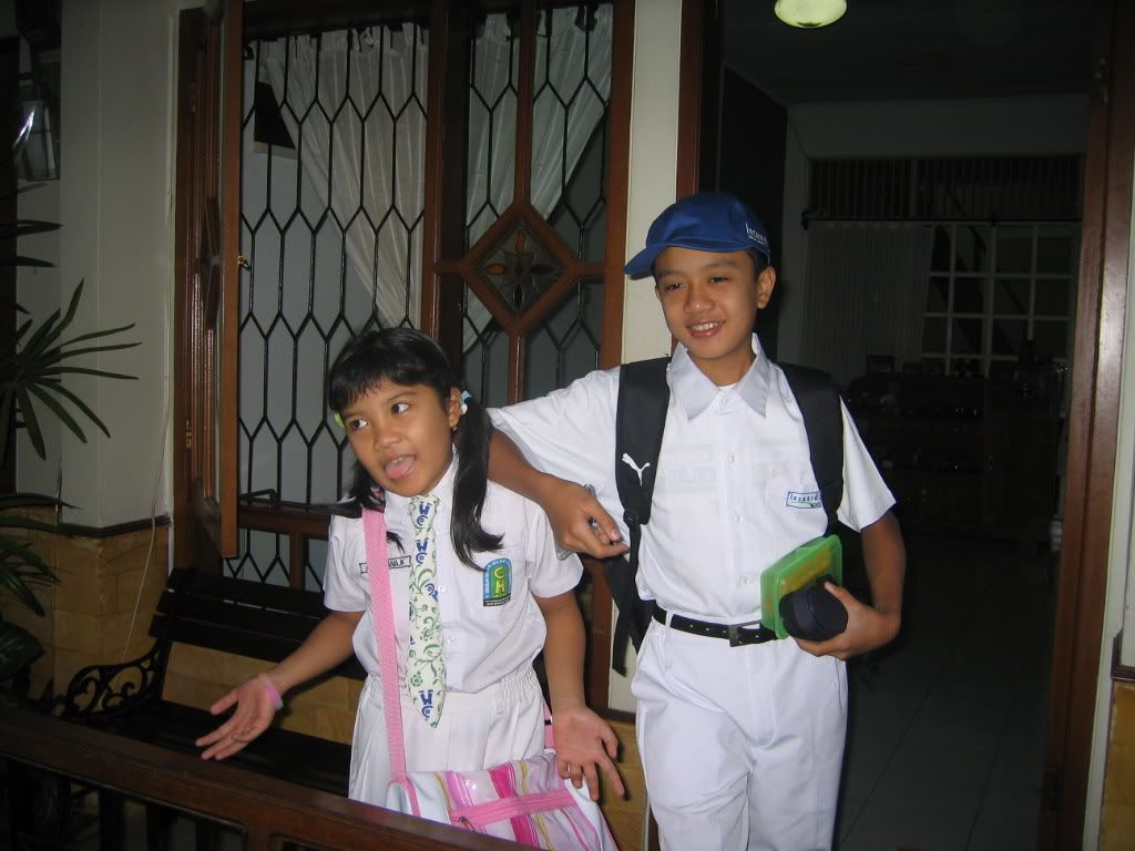 fotoku bersama keluarga saat SD.Di Sekolah Dasar Cikal Harapan inilah, aku mulai belajar tentang kehidupan dan bersosialisasi dengan teman-teman yang berasal dari berbagai sudut kota Tangerang, tak ada yang dari Jakarta waktu itu karena jauhnya jarak memisahkan antara kota calon metropolitan Tangerang ini dengan ibukota. Kalau ditanyakan tempat tinggal oleh teman-teman saya, tak heran jawaban yang keluar dari mulut mereka”, Widih jauh amet gi rumah kamu “. Namun ketika mereka saling menanyakan rumah mereka, yang ada adalah permainan angka sektor ala BSD. Antara Sektor 1, sektor 2 s,ampai sektor 3, atau nama sektor di perumahan BSD dengan menggunakan bahasa Sansekerta, Nusa Loka sampai Giri Loka. Tidak simple seperti alamatku, cukup berkata “, Permata Pamulang.” Maka mereka semua tahu di mana Pamulang itu berada, haha karena jauhnya letak rumahku itu dari BSD. Sekolahku memang sudah jauh-jauh dari rumah sejak SD. Kalau mau berangkat ke sekolah, ada dua teman barenganku, yang satu bernama Dito tinggal di Permata Pamulang juga, yang satu lagi bernama Tomi, rumahnya juga di Pamulang, tapi lebih jauh daripadaku. Haha tak apalah tapi, aku tak pernah memikirkan itu semua, dan tak mau mengeluh. Karena aku selalu ingat akan pepatah “, Bersakit-sakit dahulu, bersenang-senang kemudian ".